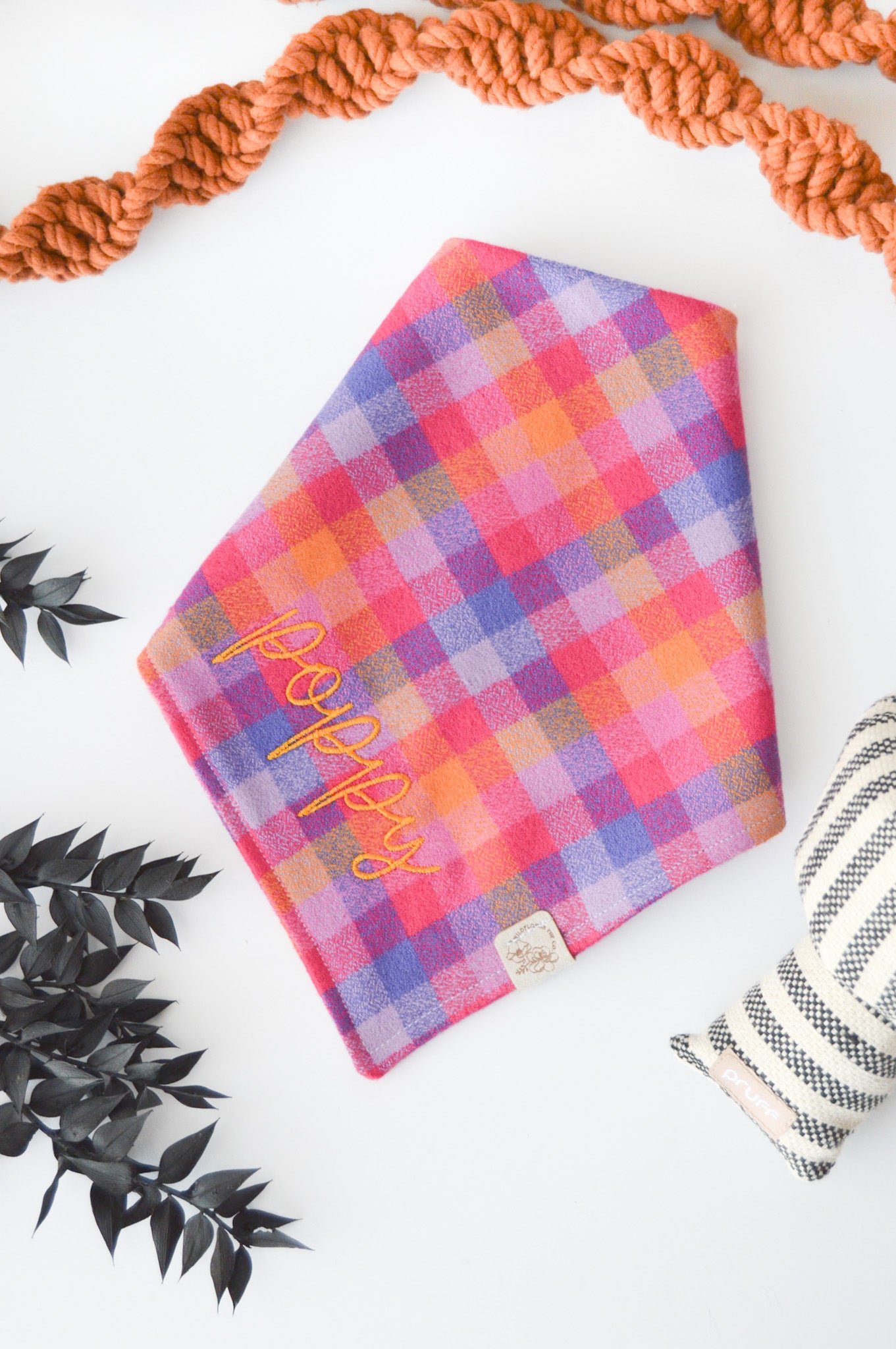 Care instructions: We recommend spot cleaning or handwashing to prolong the life of your Wildflower Pup Co. bandana. Lay flat to dry.