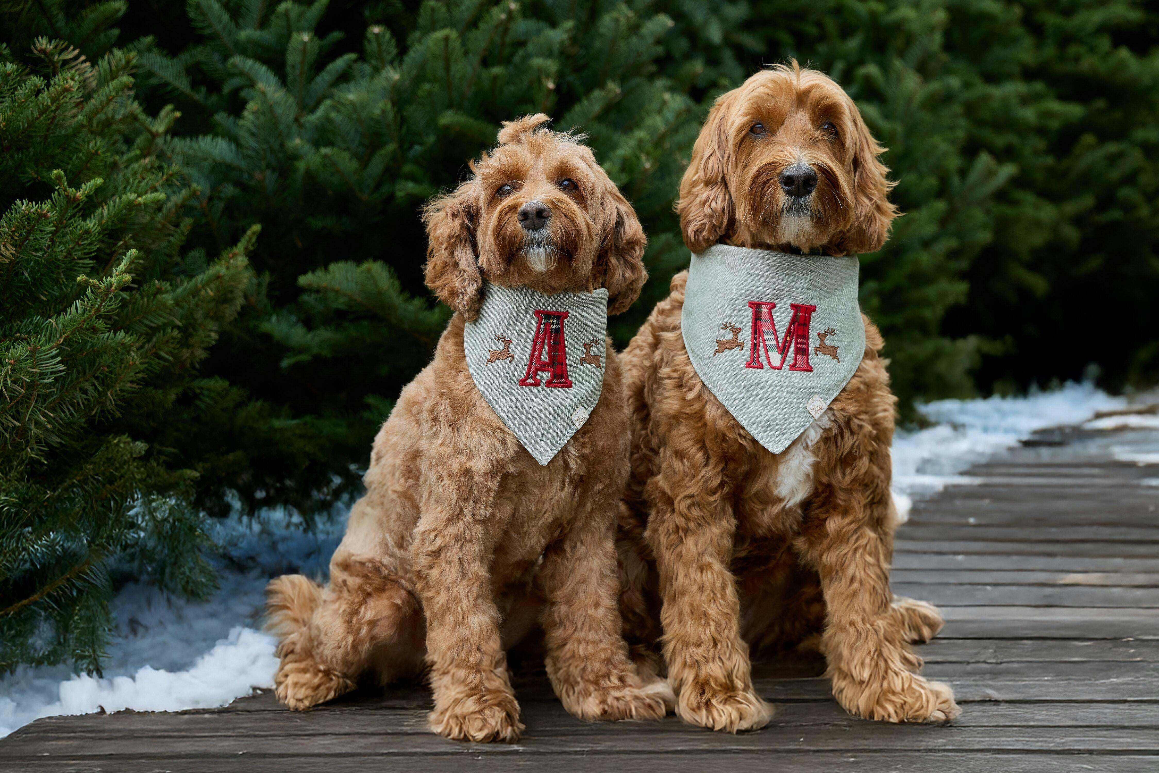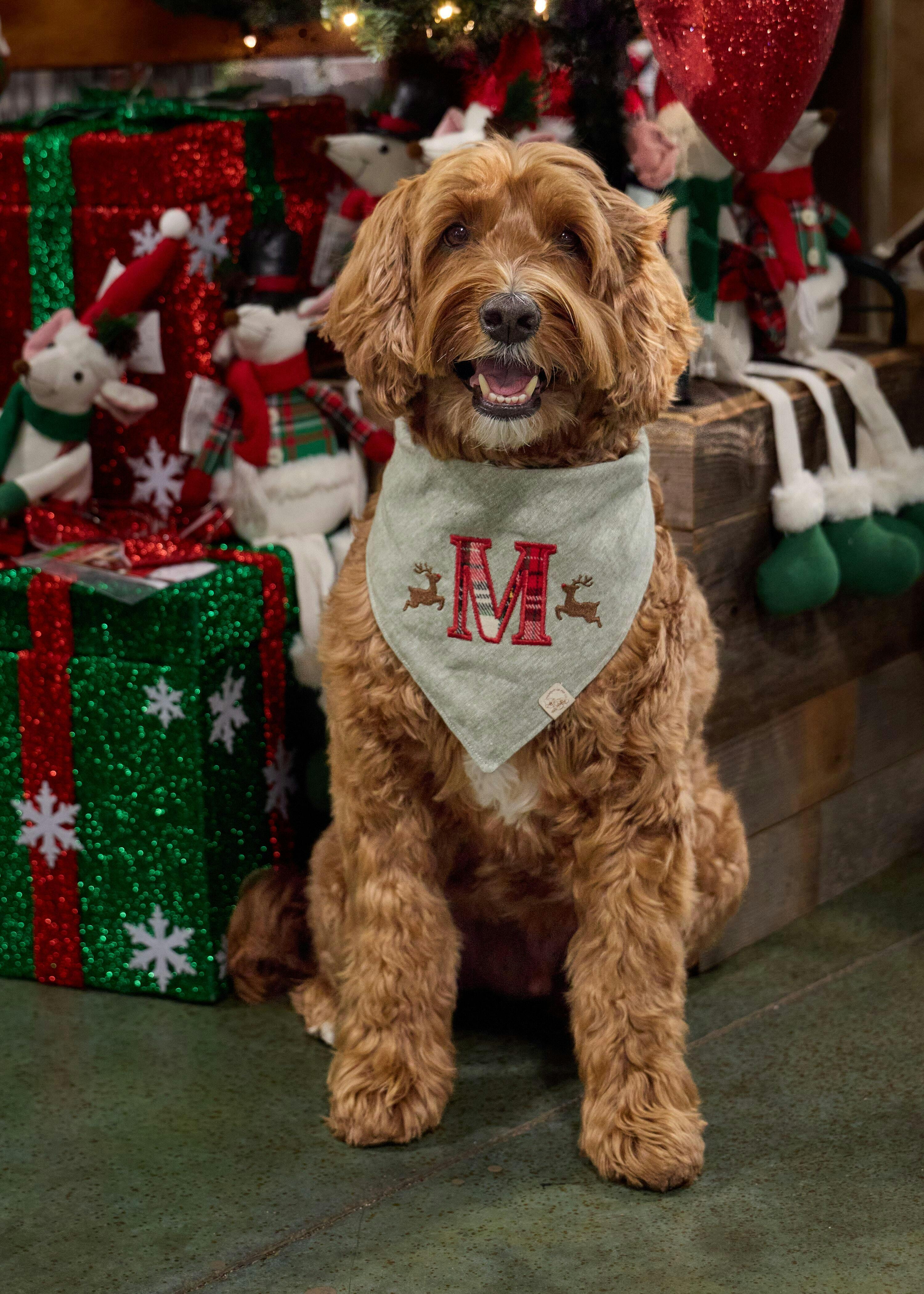 This bandana is made from a neutral linen blend and features a flannel appliqué of your pup's initial & two little reindeer! Make sure to leave the initial you would like in the notes section at checkout!