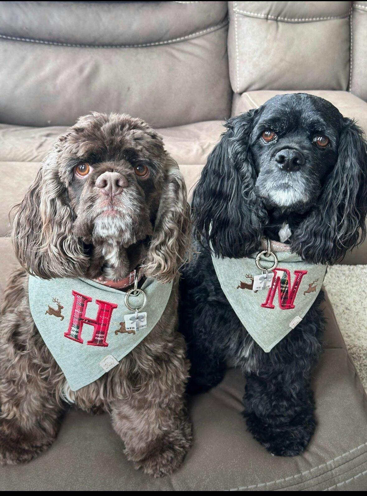These fun bandanas are adorable! The pattern is so unique and I love the plaid as the initial monogram! So very fun and super unique! One of my absolute favorites! Every pup got one!
