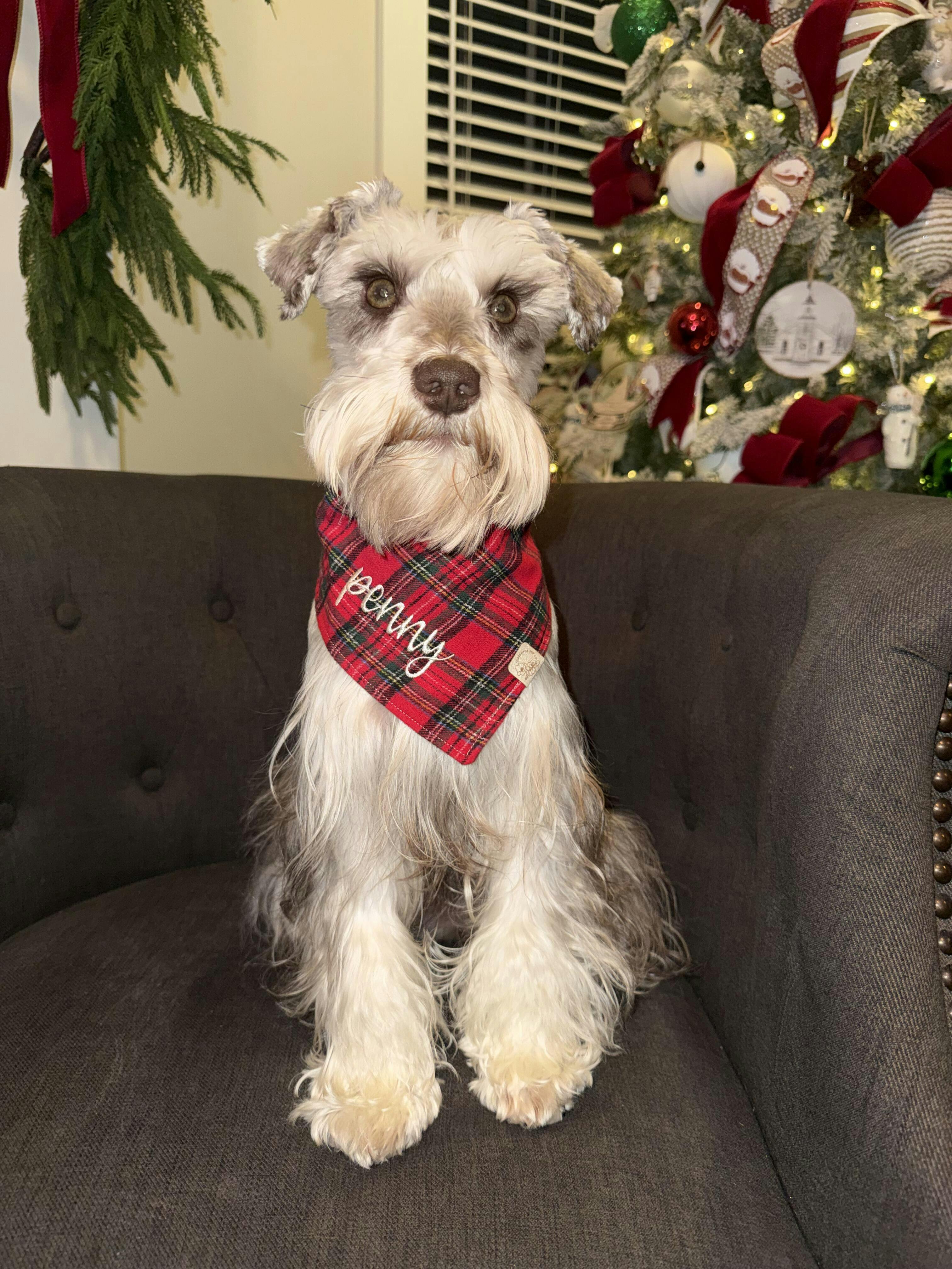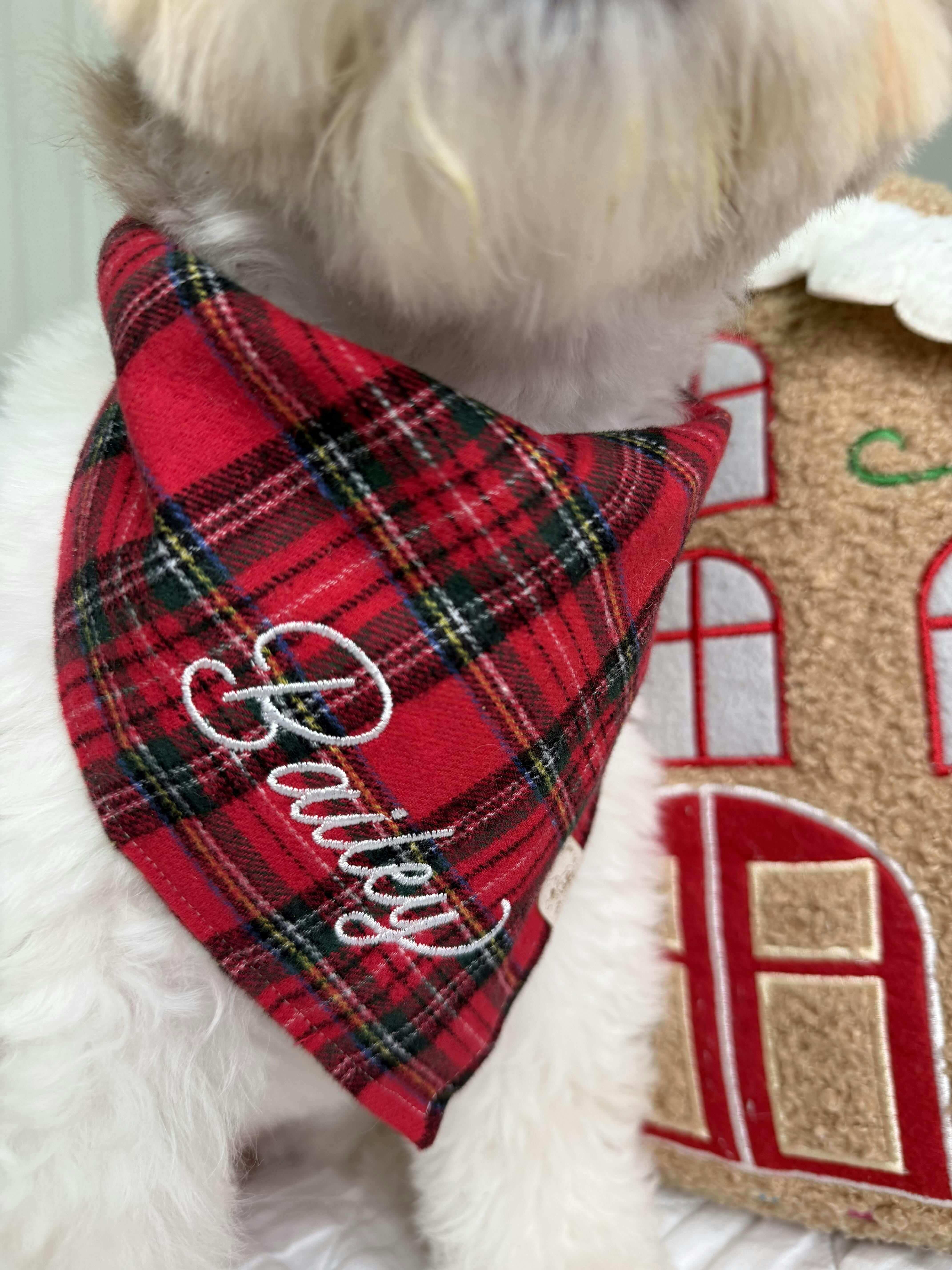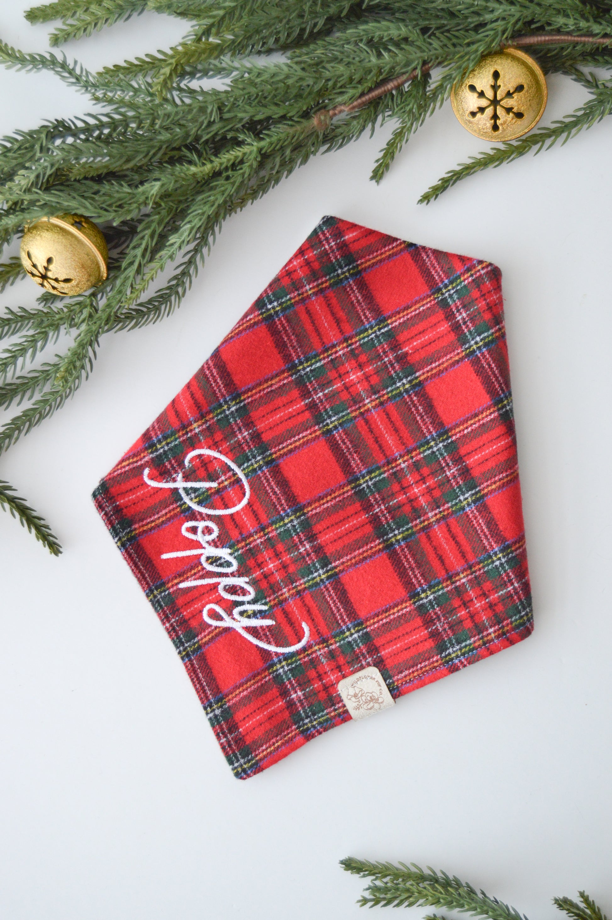 The red plaid flannel Christmas bandana is adorable and so well made! The fabric is soft and festive, perfect for the holidays. I added my dog’s name embroidery, and it turned out beautifully... such a cute, personal touch. He looks absolutely handsome in it!