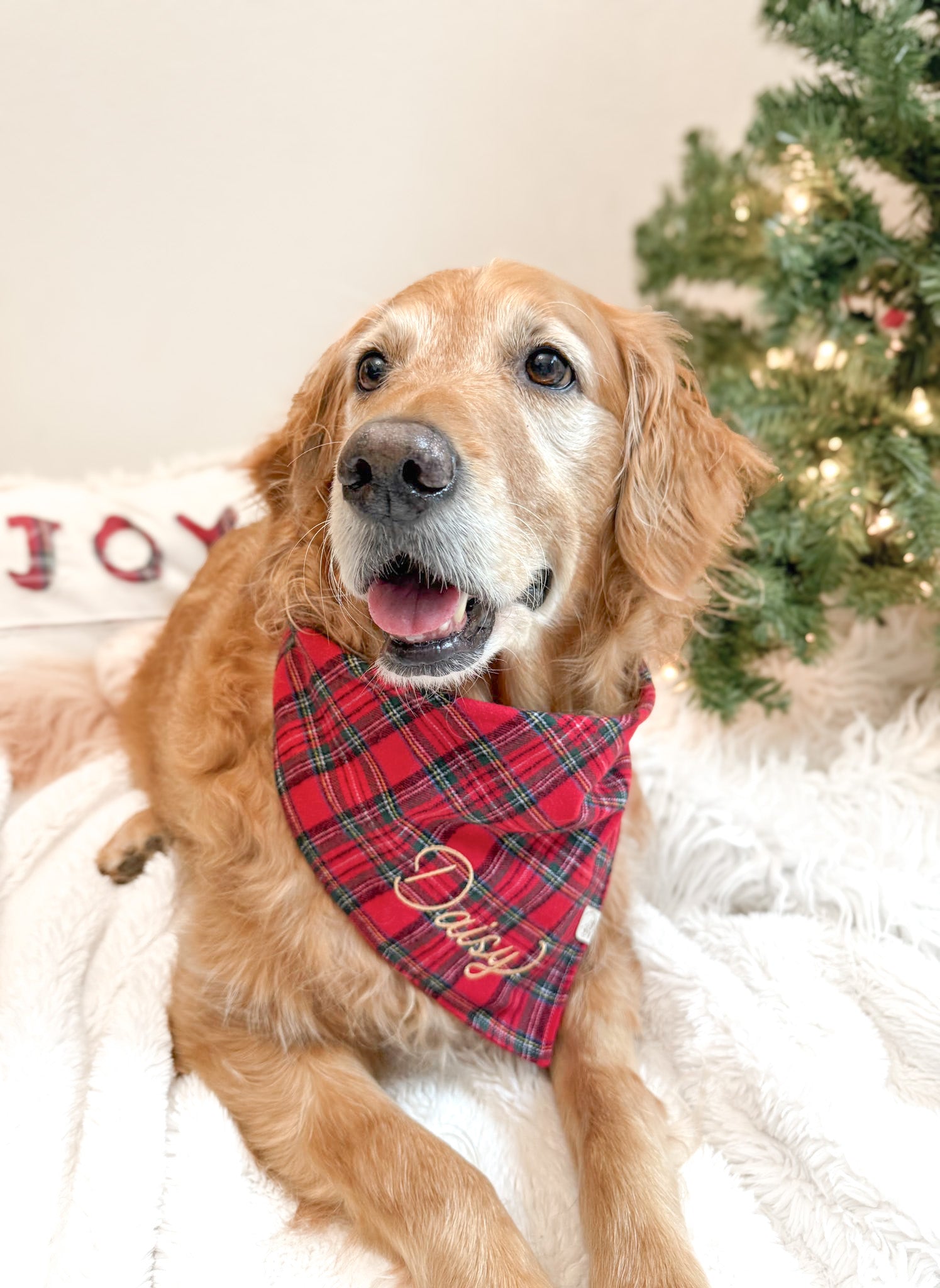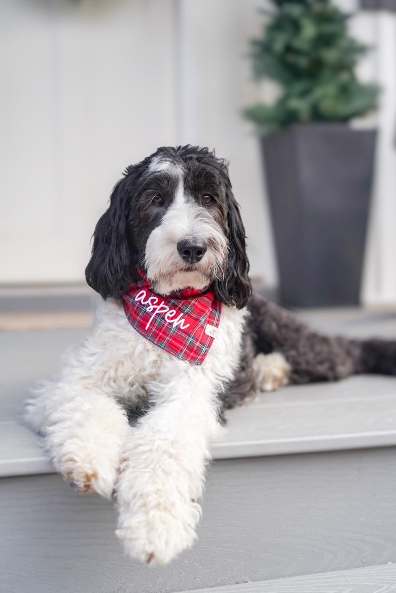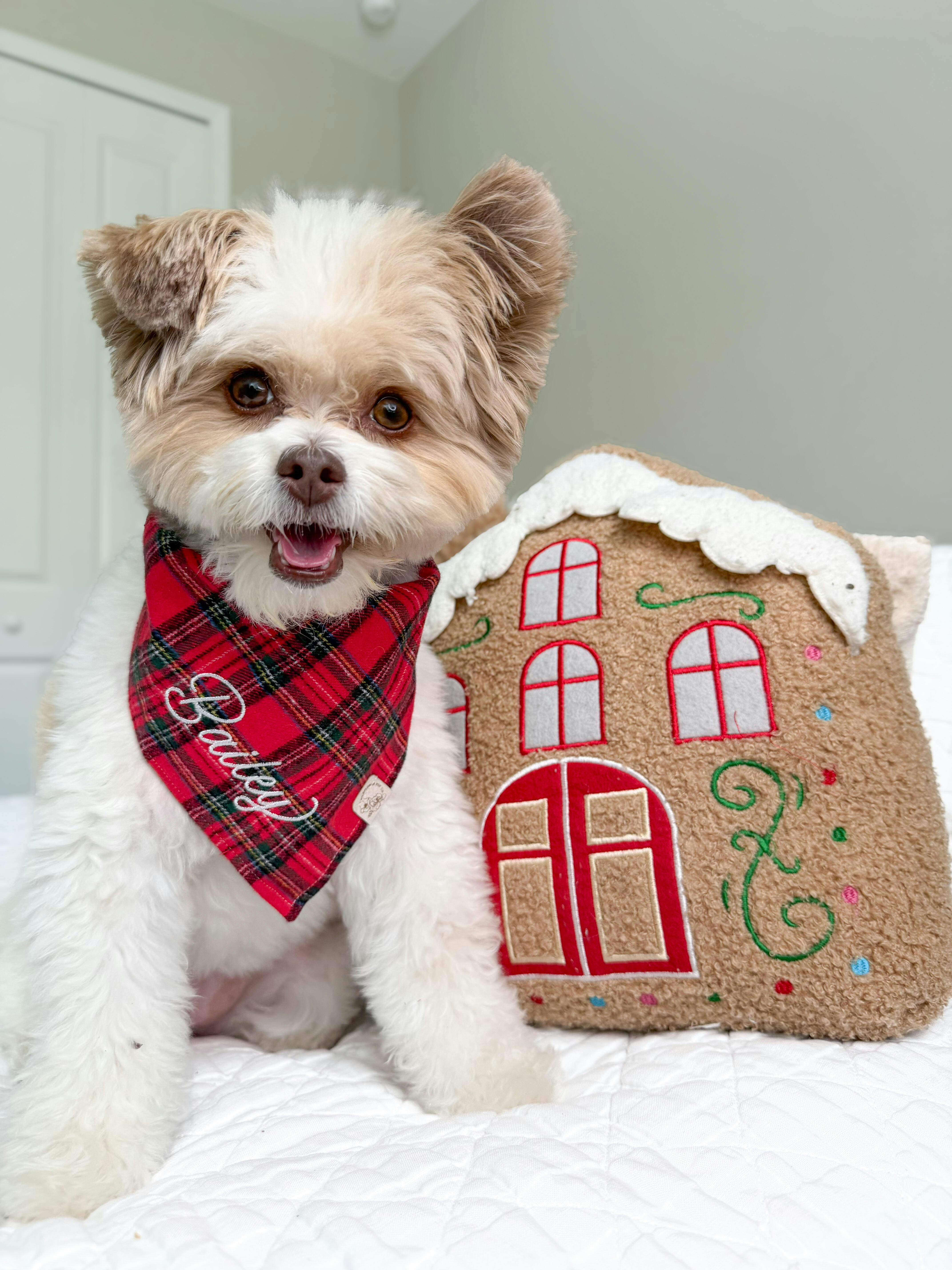 The red plaid flannel Christmas bandana is adorable and so well made! The fabric is soft and festive, perfect for the holidays. I added my dog’s name embroidery, and it turned out beautifully... such a cute, personal touch. He looks absolutely handsome in it!