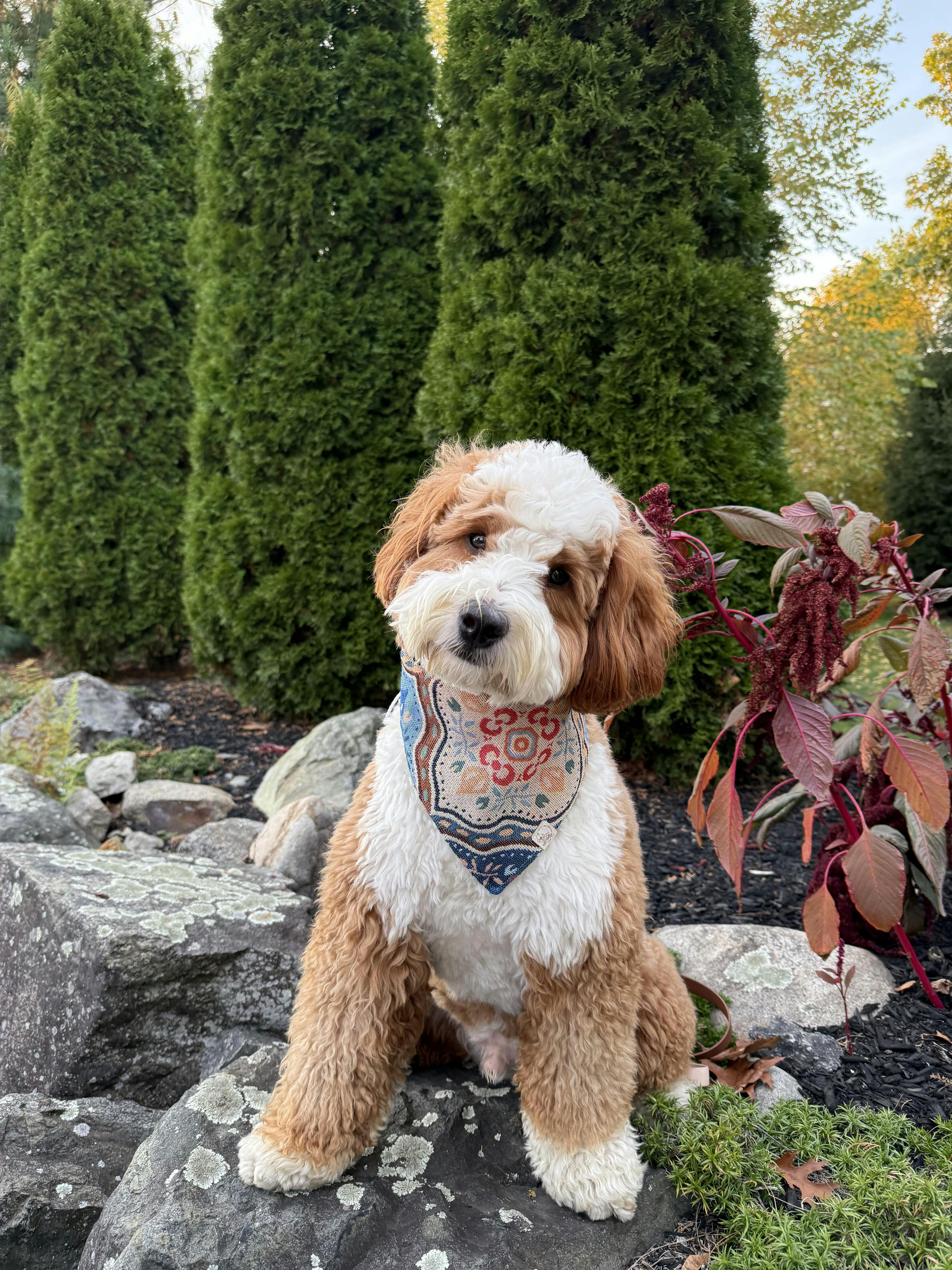 This bandana is absolutely gorgeous! The vintage tapestry fabric with its rich blues and browns gives it such a unique, timeless look. It fits perfectly, feels high-quality, and makes my pup look so stylish. We've gotten tons of compliments—definitely a new favorite accessory!