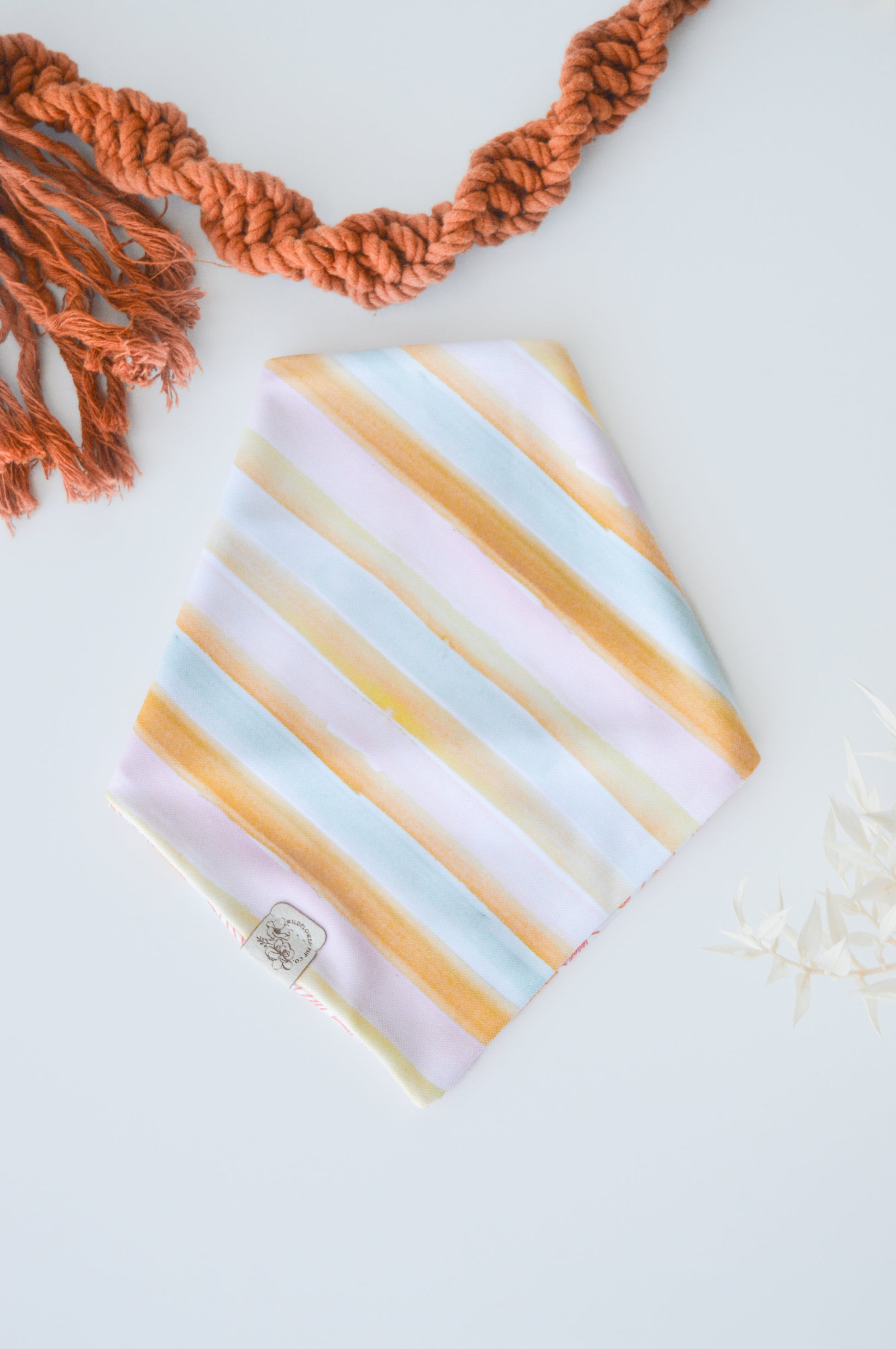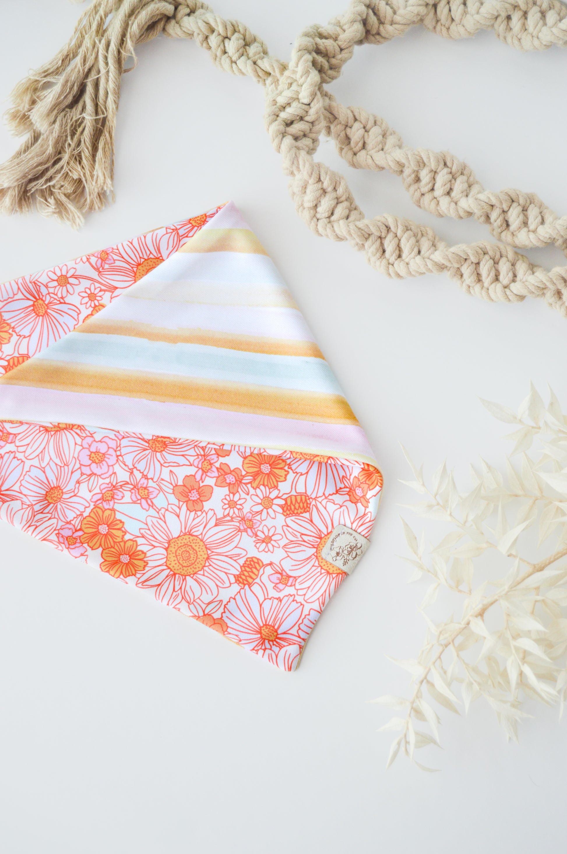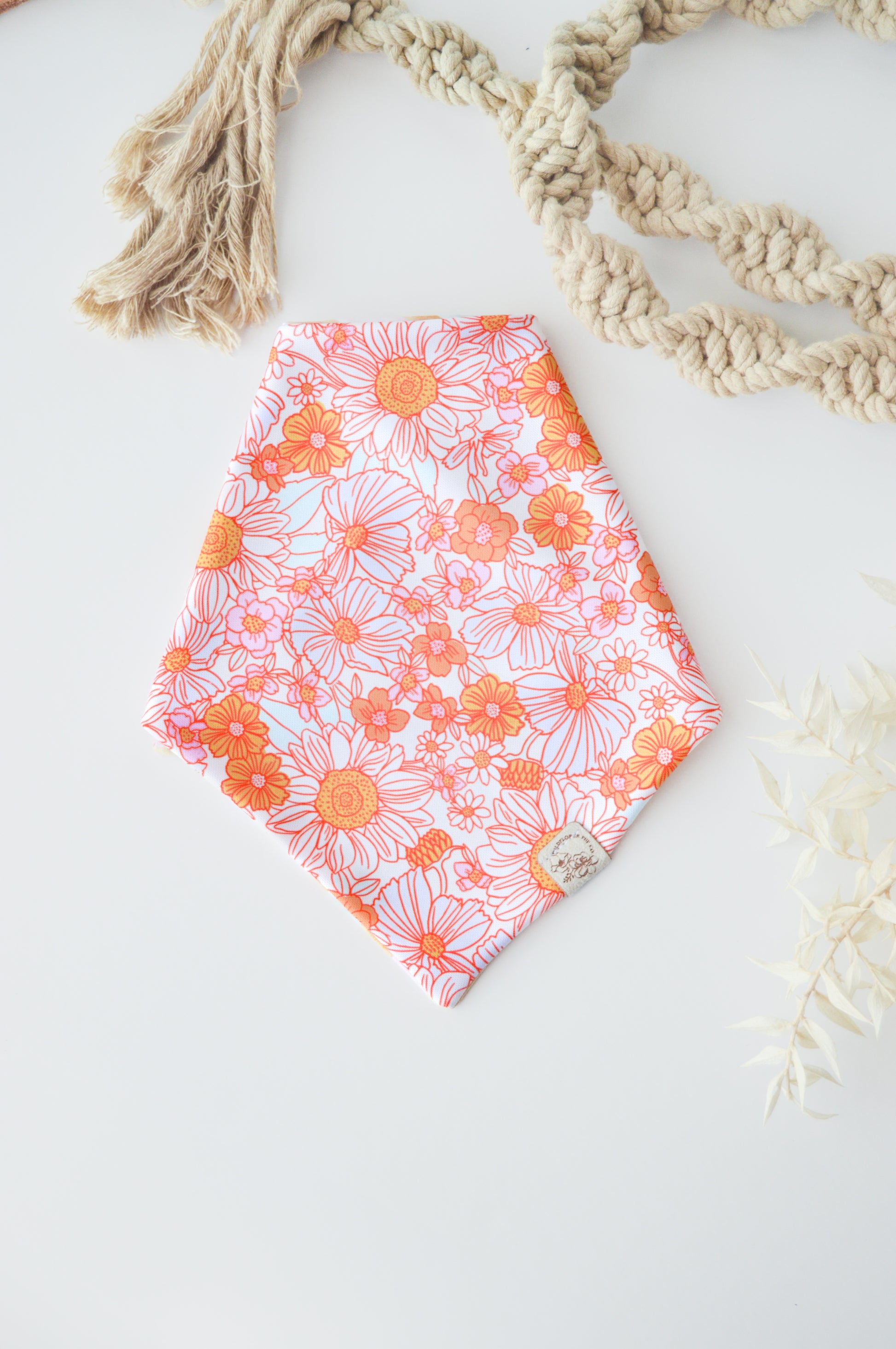 Care instructions: We recommend spot cleaning or handwashing to prolong the life of your Wildflower Pup Co. bandana. This material can also be machine washed on low/cold if needed. Lay flat to dry.