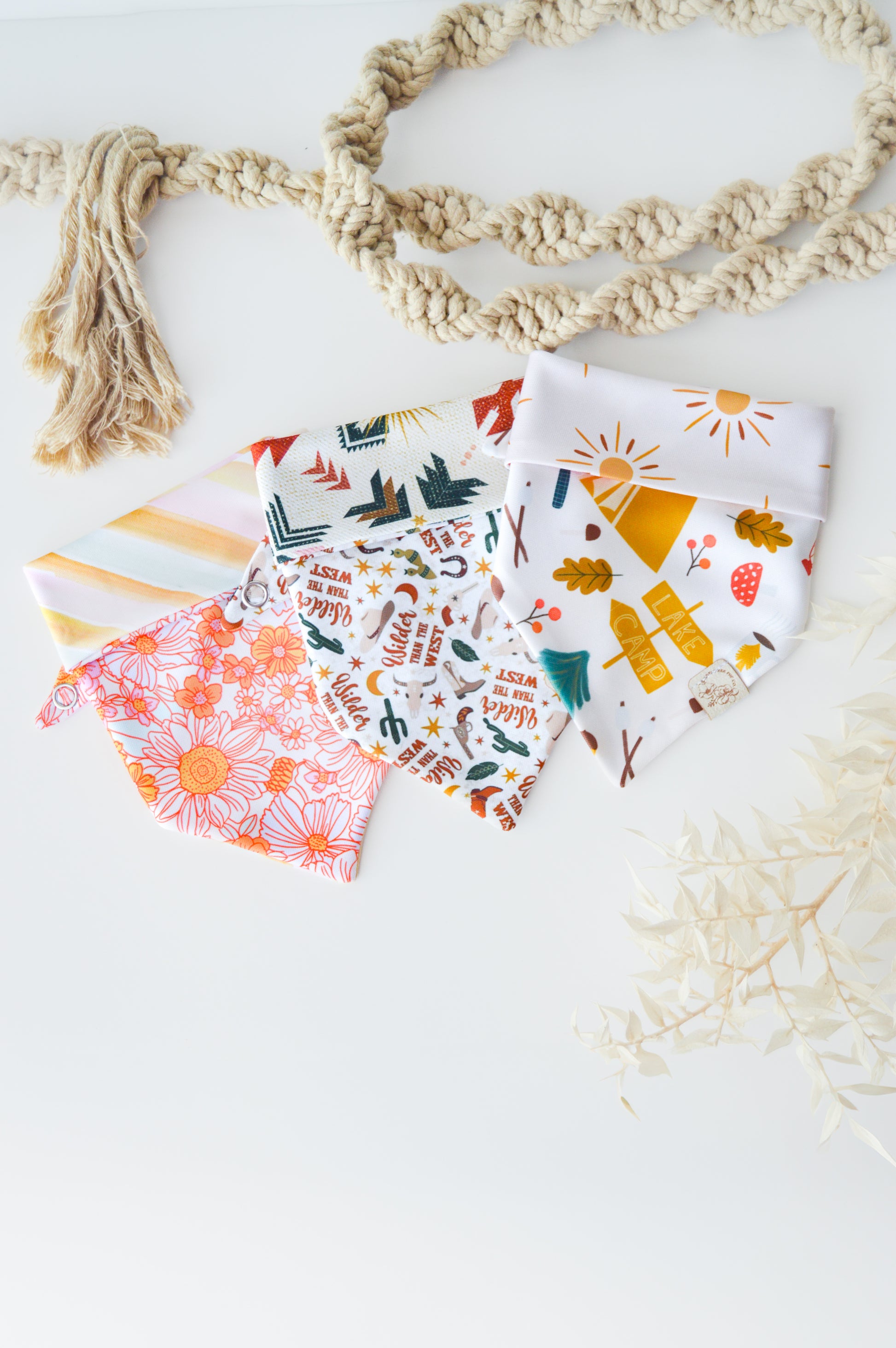 Wildflower Pup Co. bandanas feature a single snap closure allowing for easy removal but sustaining your pup's everyday adventures! Due to the hand made nature of our products, expect some variability in sizing and placement of patterns.