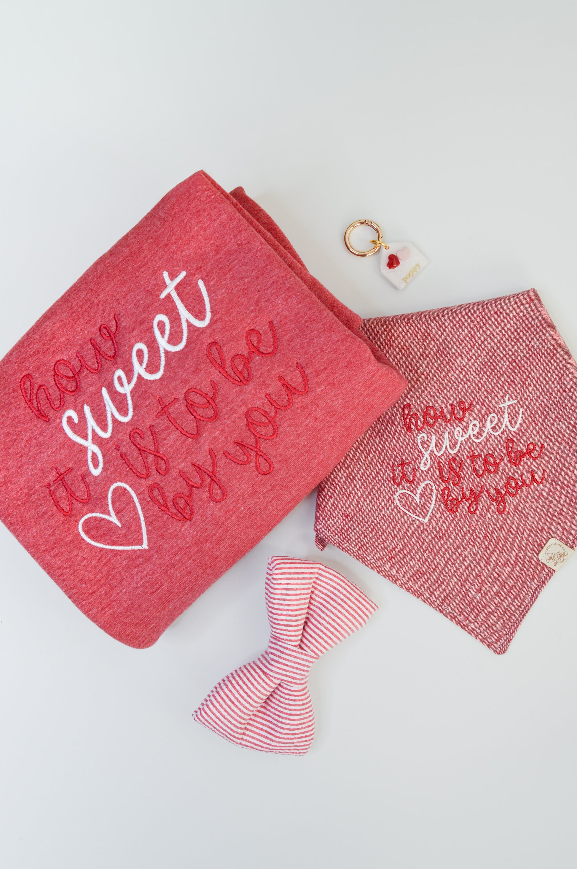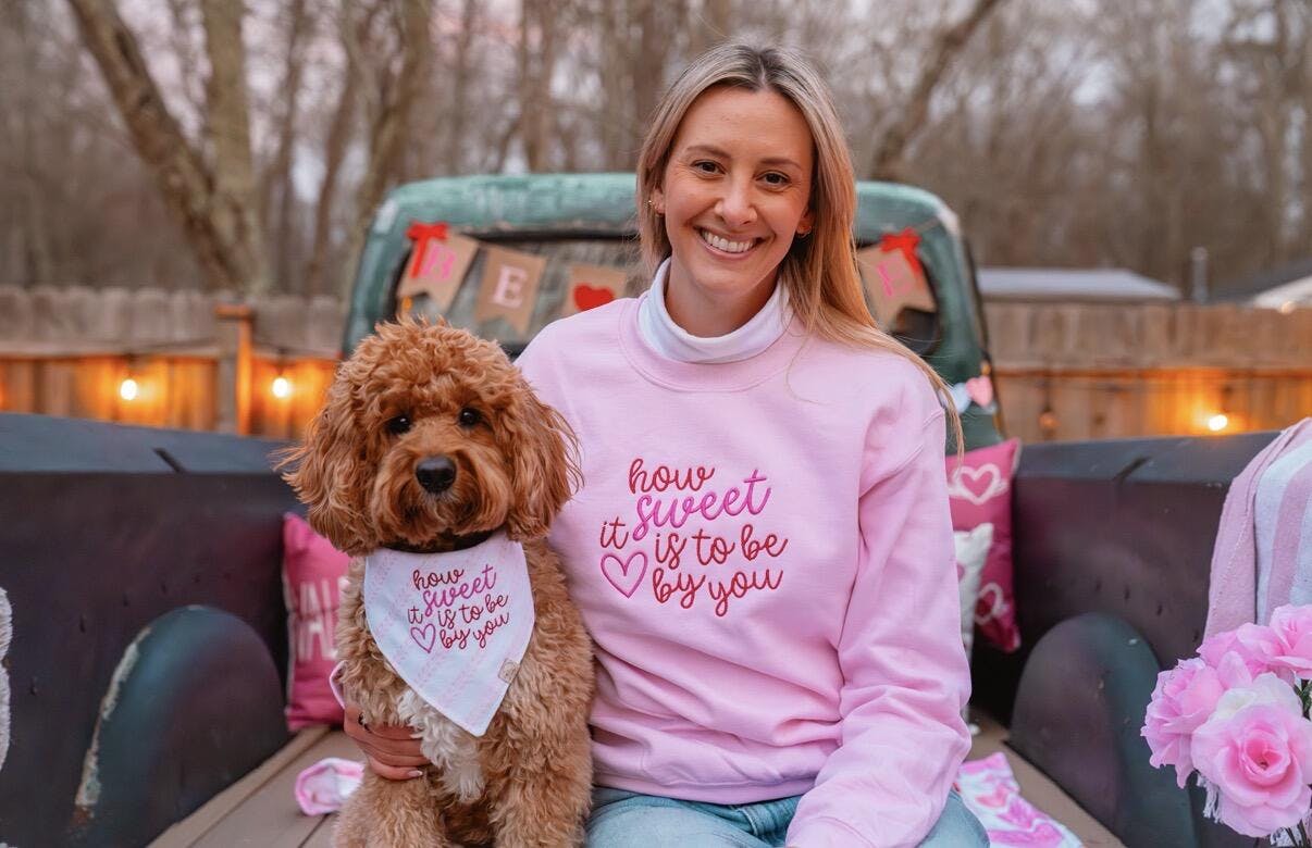 This crewneck comes in either pink or heathered red to match the bandana options!