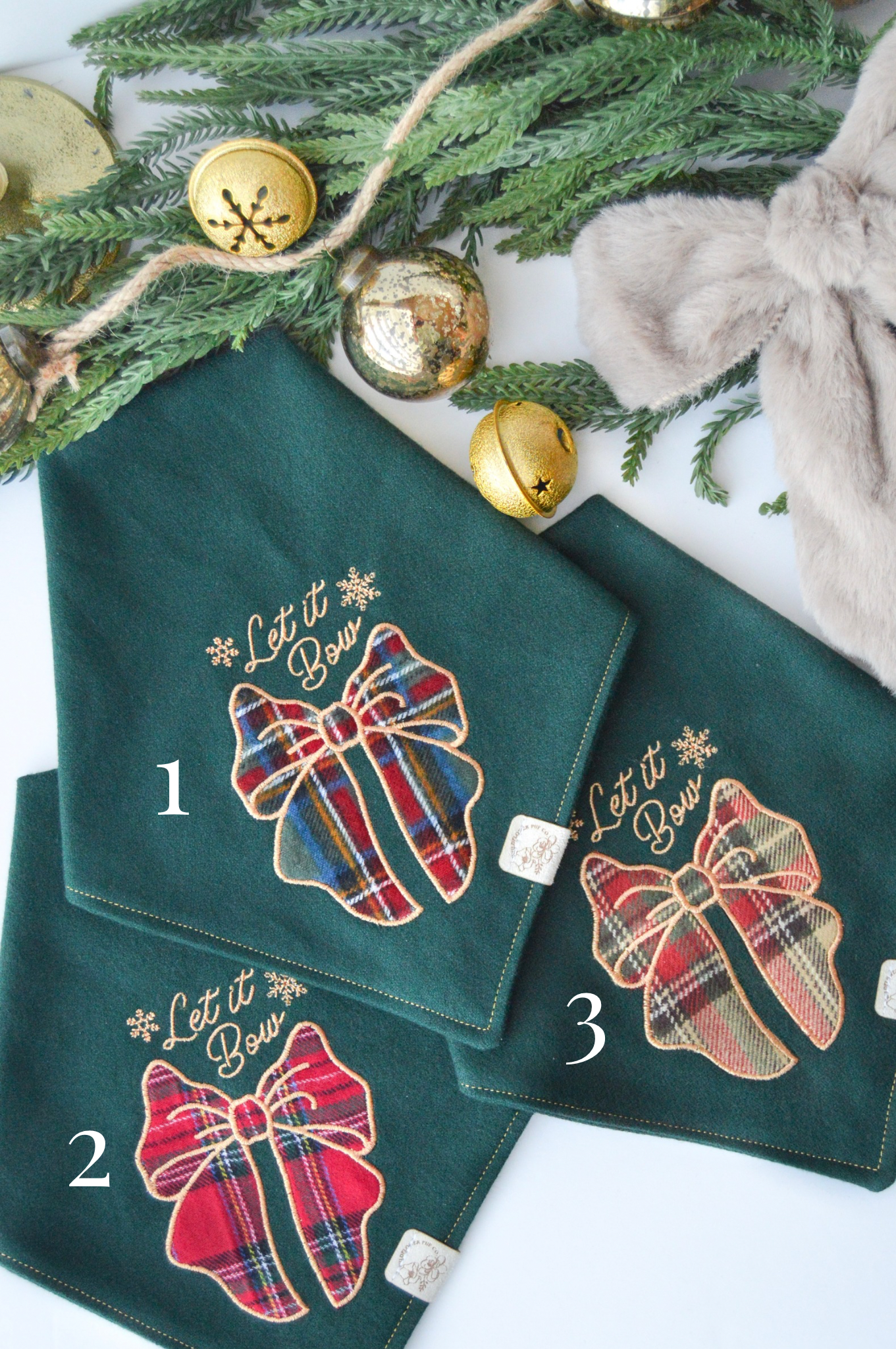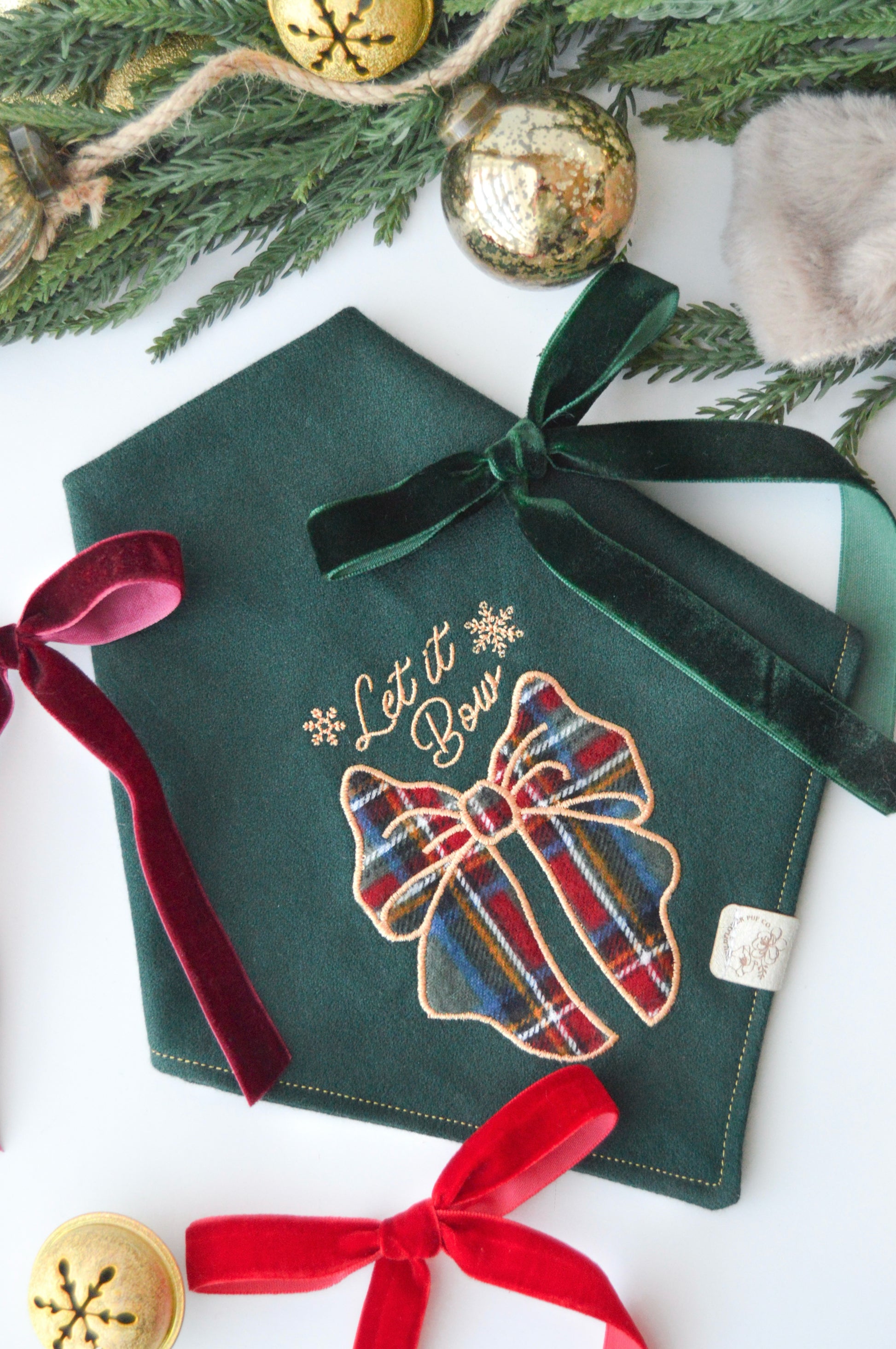 This bandana is made from a premium brushed flannel with the cutest embroidery/ appliquéd flannel bow design! Use the notes section to indicate which flannel you would like for your appliqué bow!