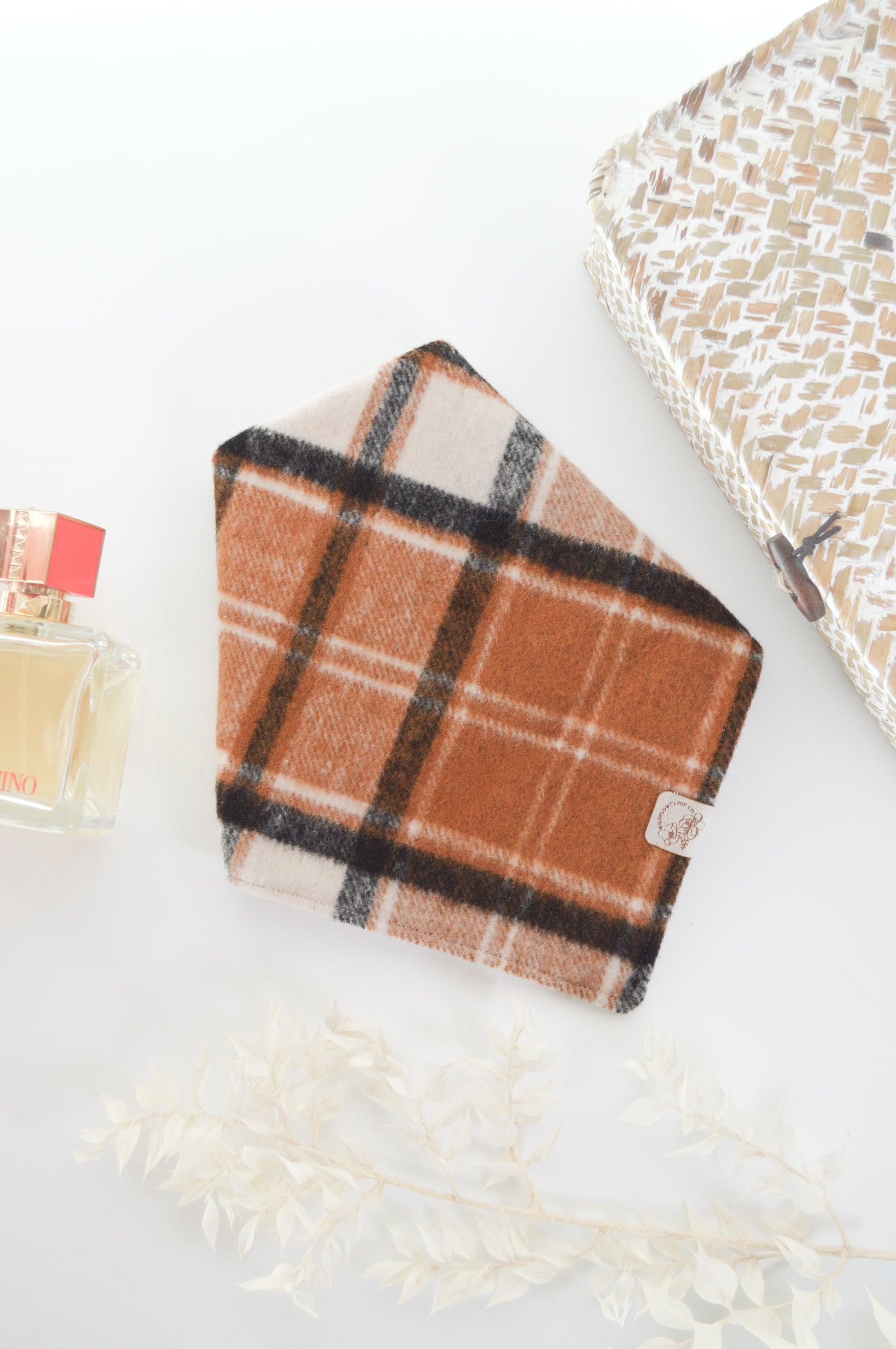 This bandana is made from a luxe wool material and backed with a neutral linen.