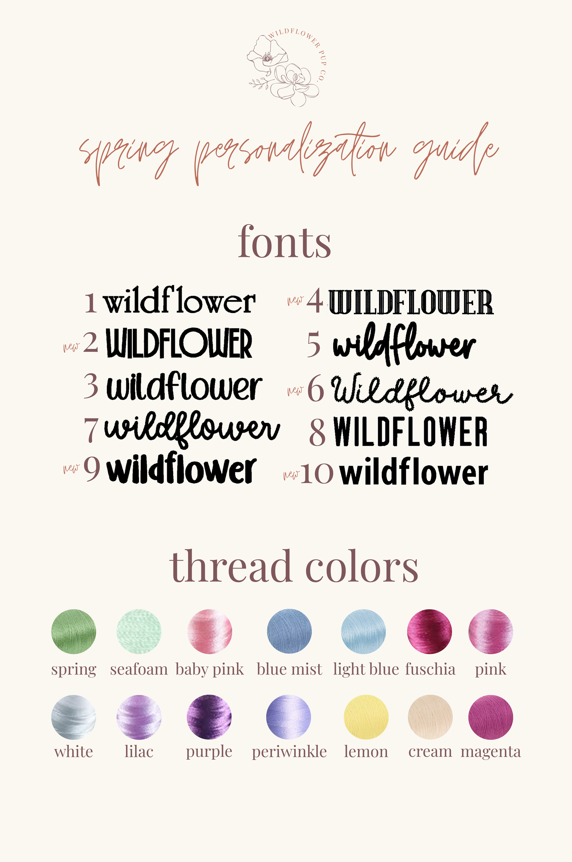 Use the text box to indicate your font and thread color choice!