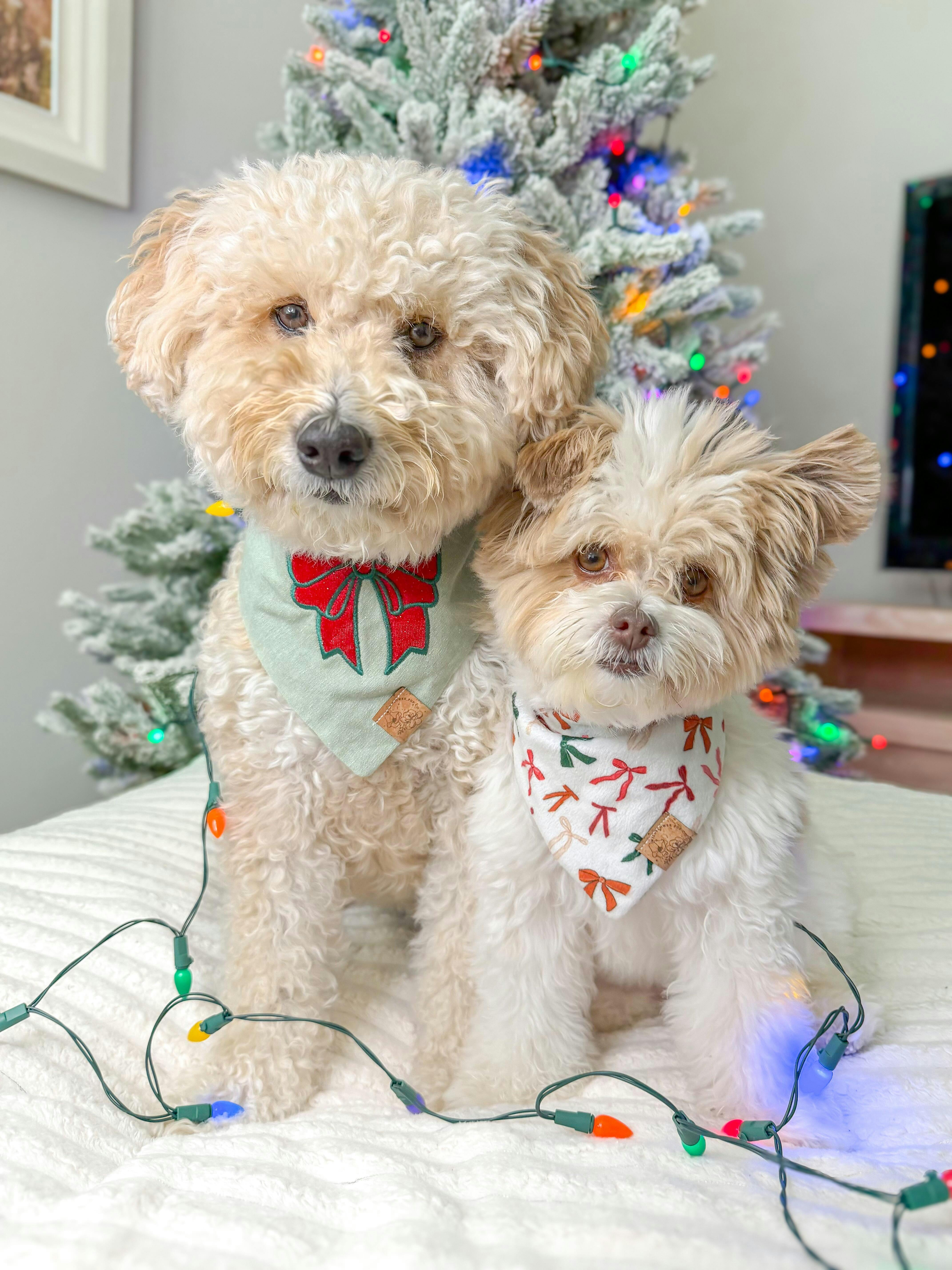 Sizing: Outlined in photo. Please measure your pet's neck and reference our size guide before ordering. If in between sizes, we recommend sizing up to ensure the best fit! Each bandana can be tied or rolled before snapping for a tighter fit.