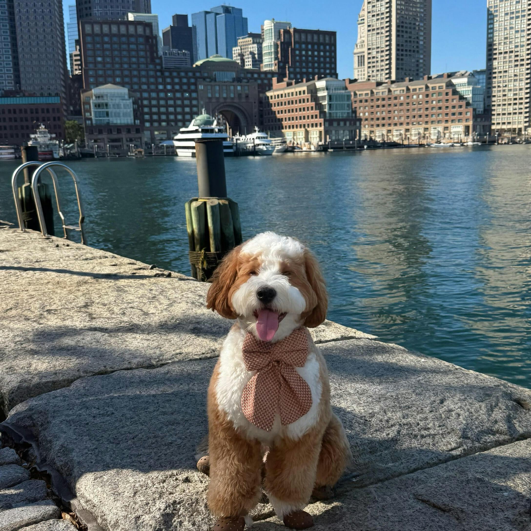 I couldn't be happier with this adorable dog bow! The rich brown fabric paired with the subtle shimmer of gold thread gives it the perfect autumn vibe. It’s classy, seasonal, and looks absolutely stunning against my dog’s coat. The craftsmanship is top-notch! It’s well-stitched, sturdy, and stays in place even during our long fall walks through the park