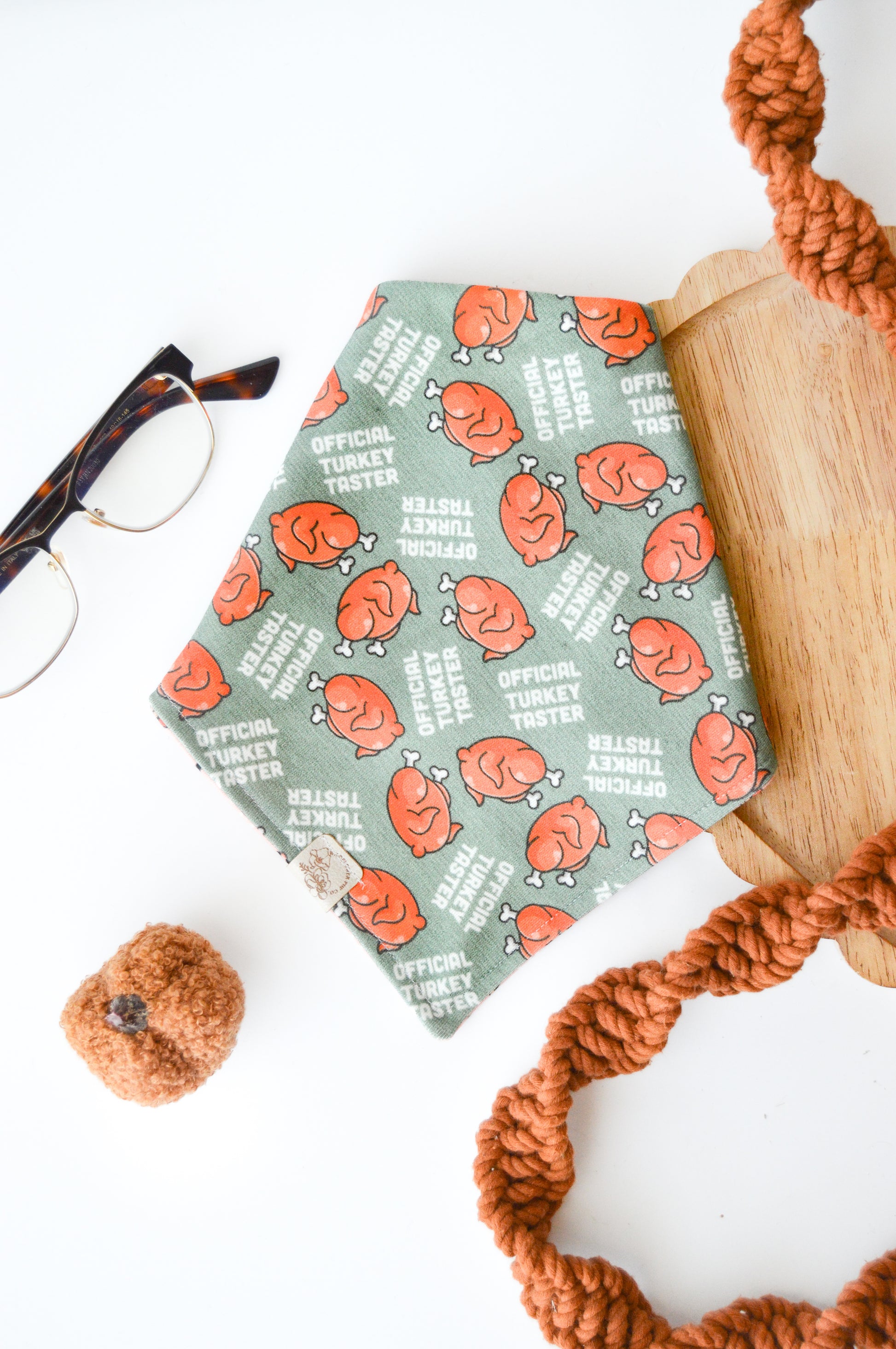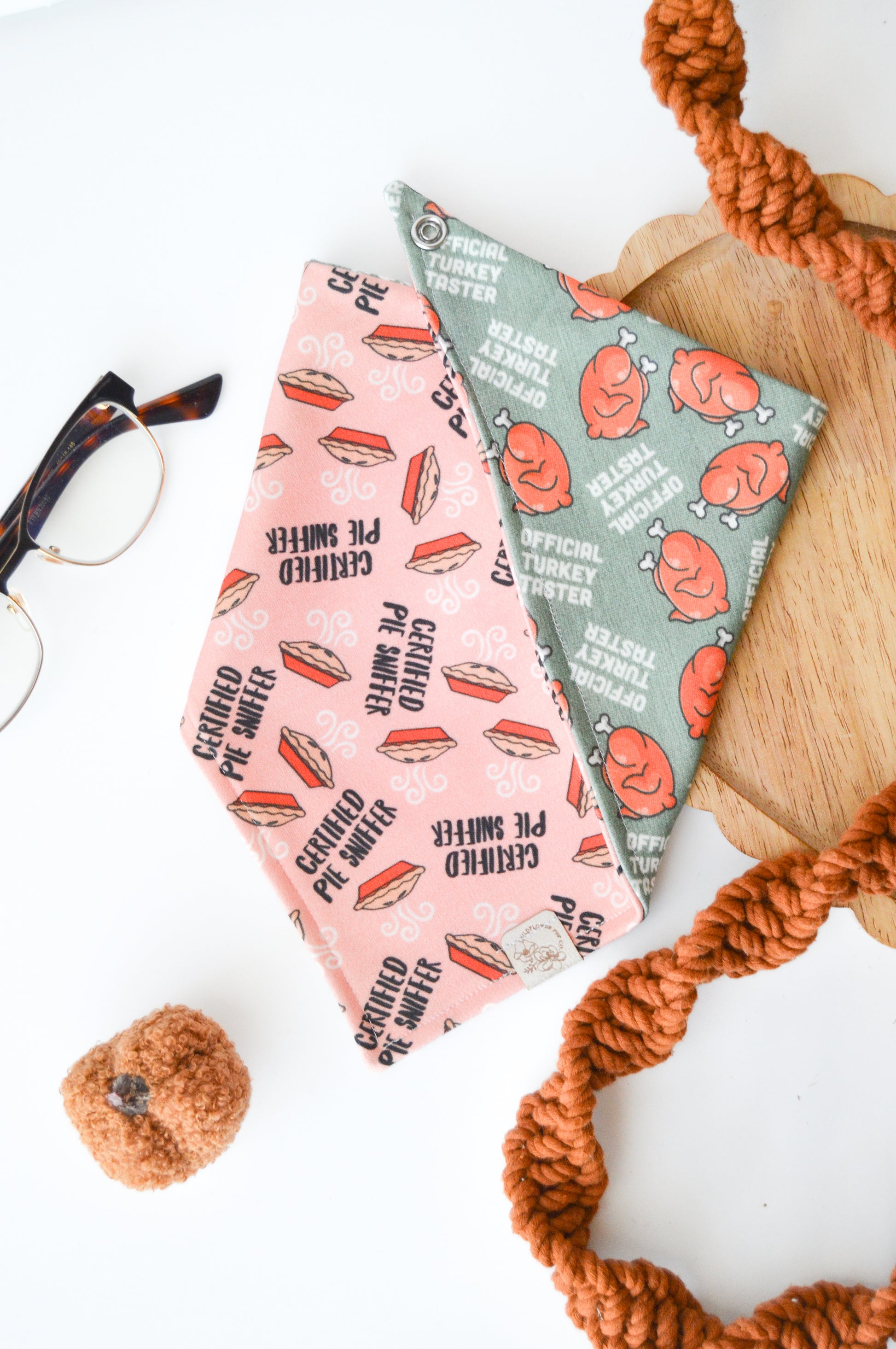 This reversible bandana is made from a soft organic cotton knit and features two prints perfect for Thanksgiving!