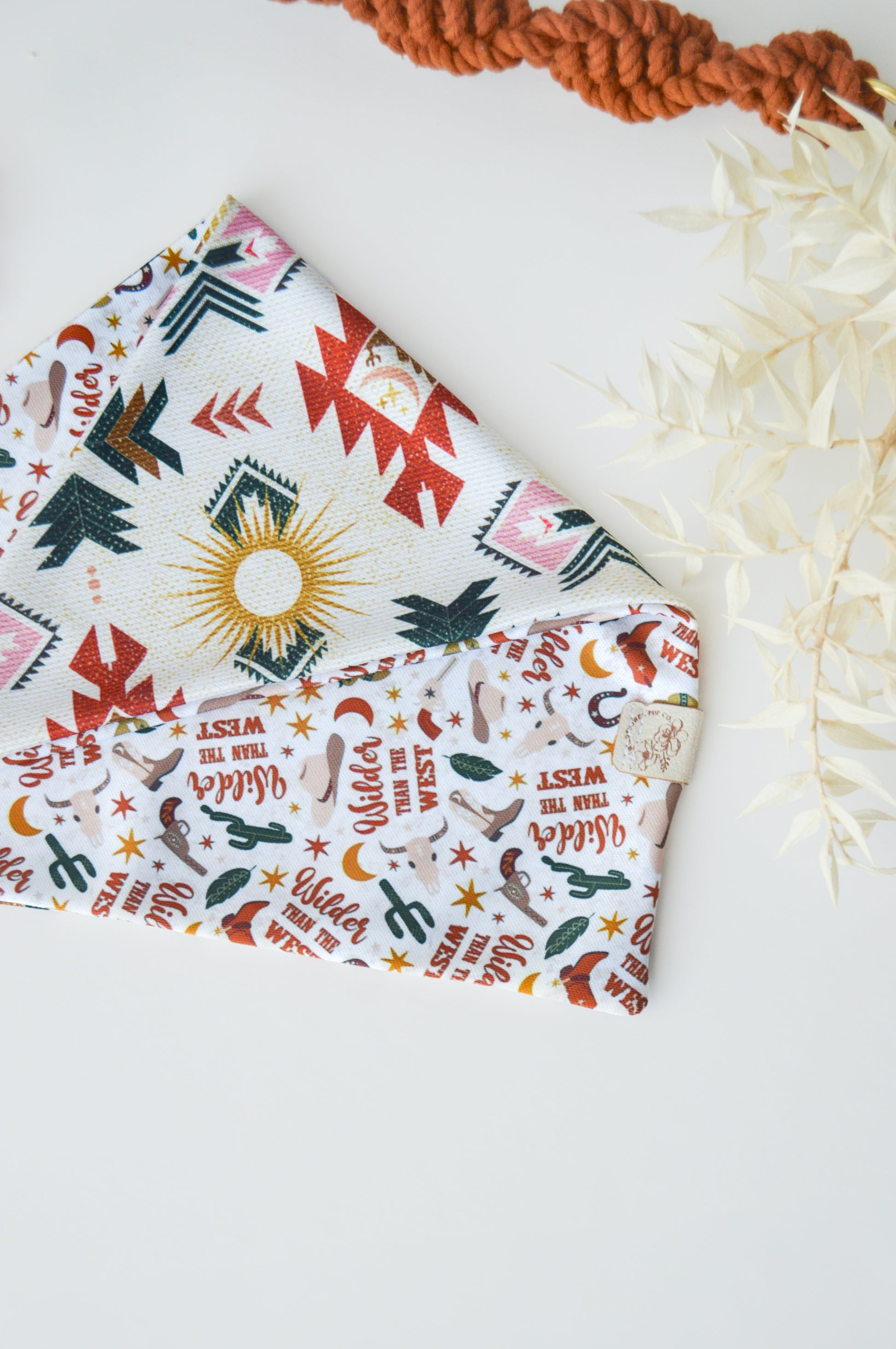 Wildflower Pup Co. bandanas feature a single snap closure allowing for easy removal but sustaining your pup's everyday adventures! Due to the hand made nature of our products, expect some variability in sizing and placement of patterns.